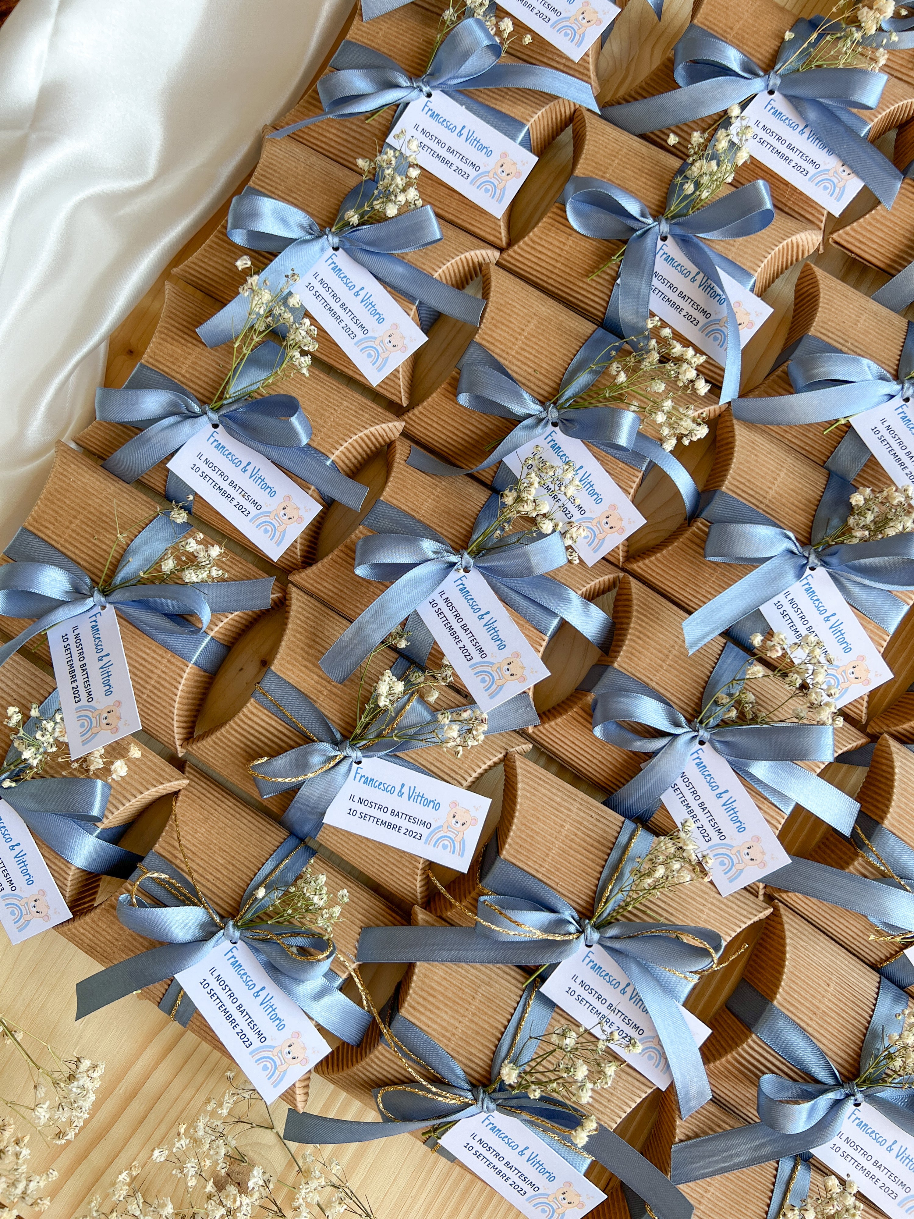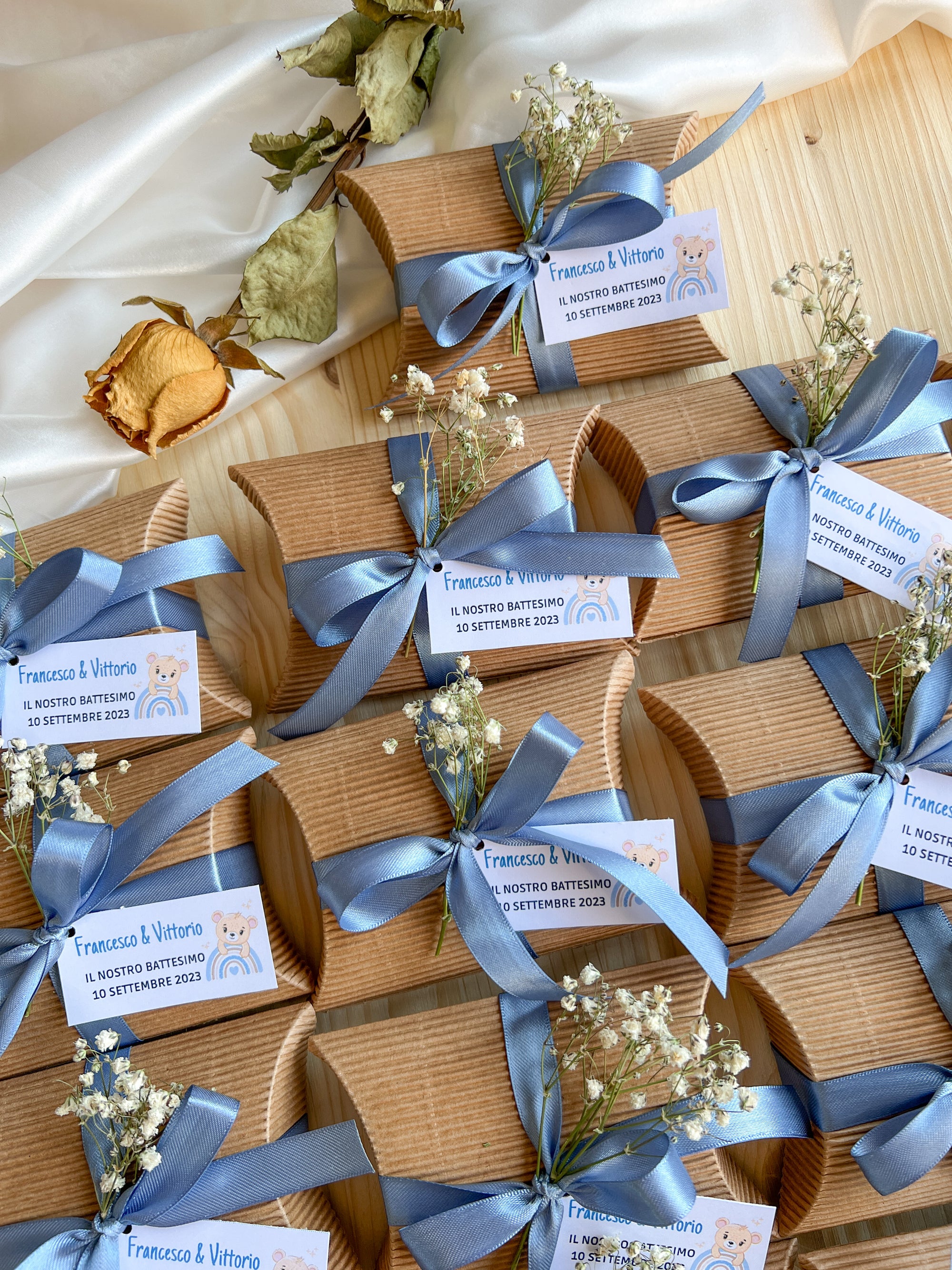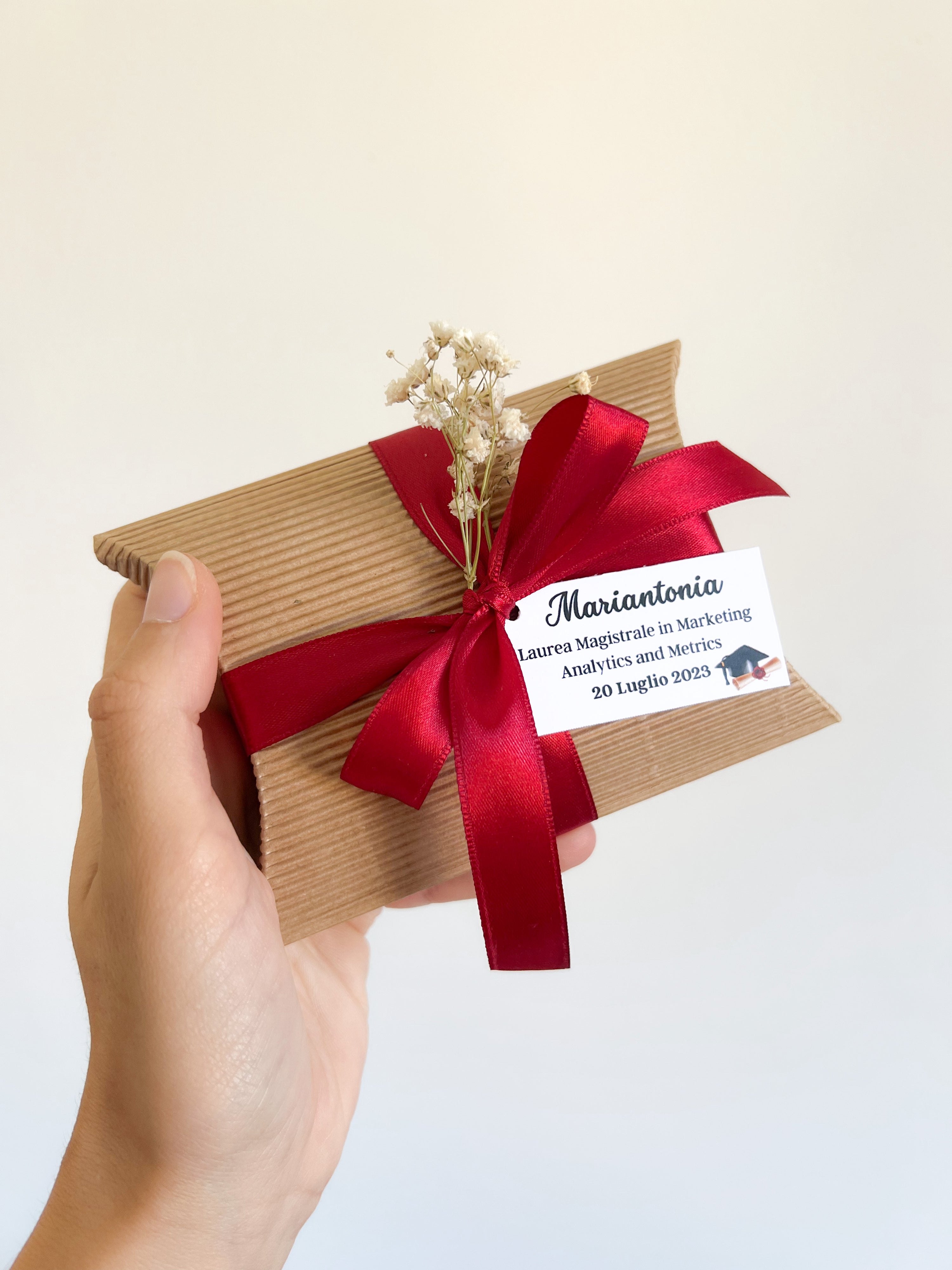 Ogni creazione viene confezionata con cura, pronta per essere donata come ricordo di un giorno speciale.