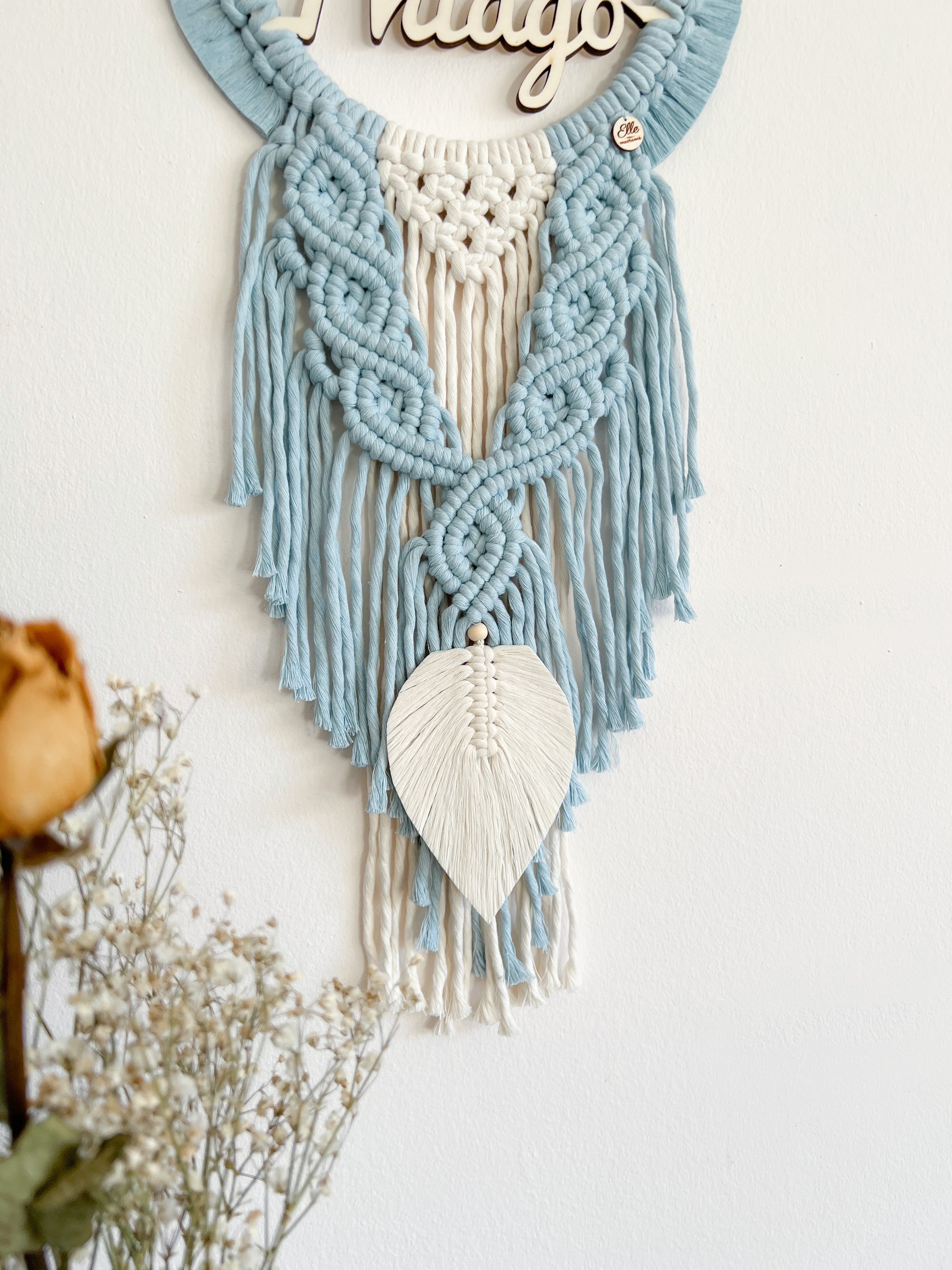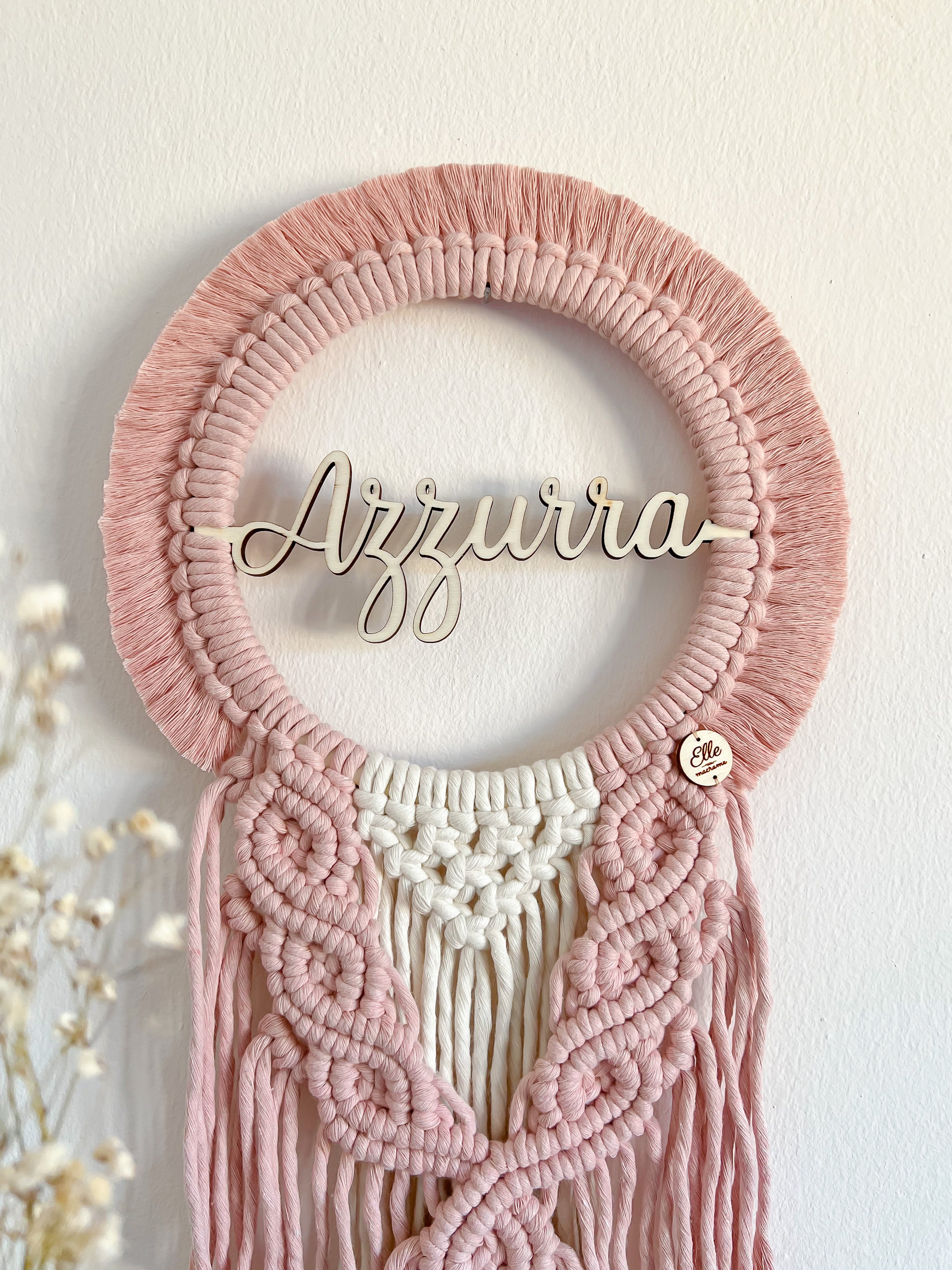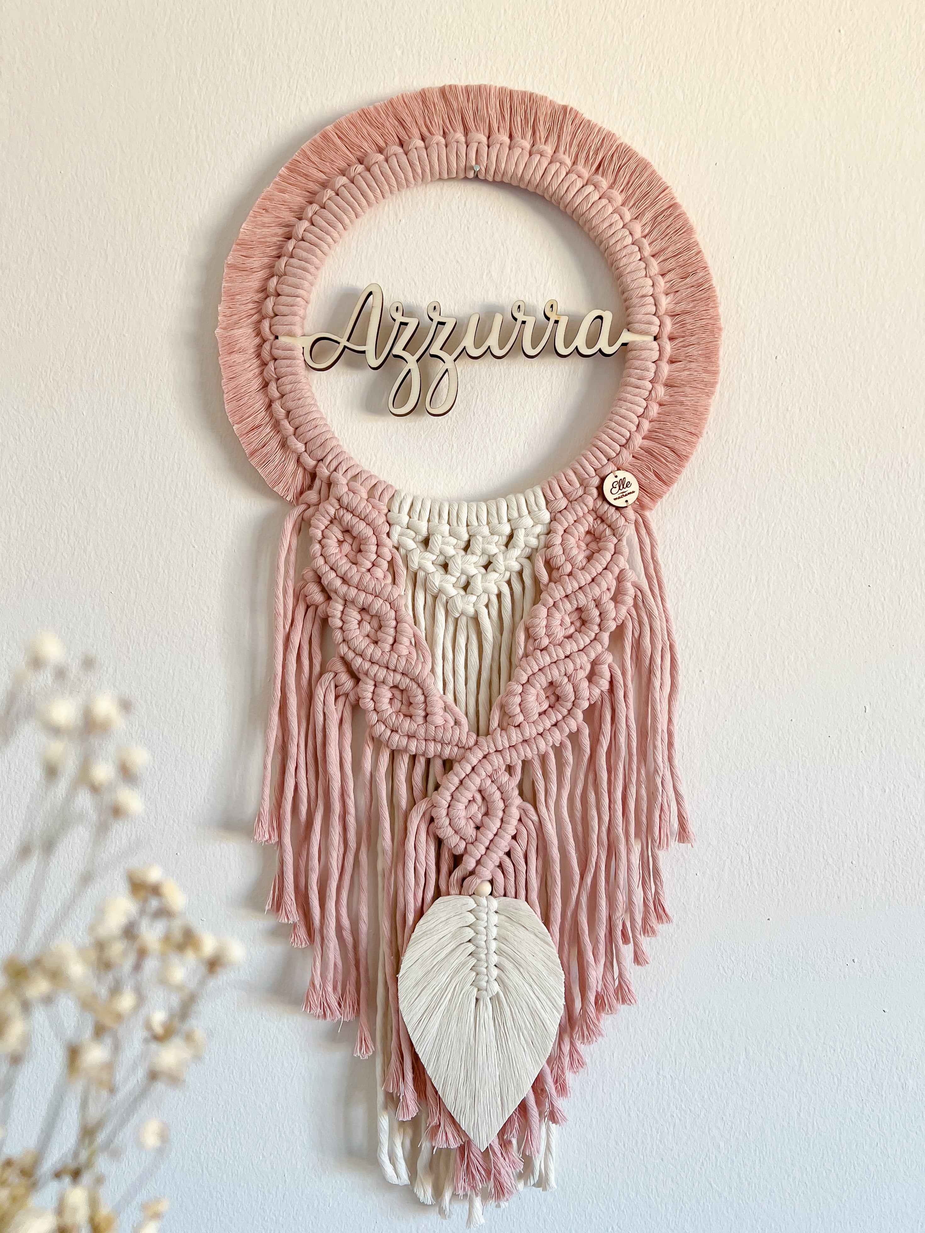 Una ghirlanda nascita dal gusto sognante e delicato, ispirata all’acchiappasogni. Una creazione elegante e senza tempo, perfetta per annunciare una nascita e, successivamente, per decorare la cameretta del tuo bambino.